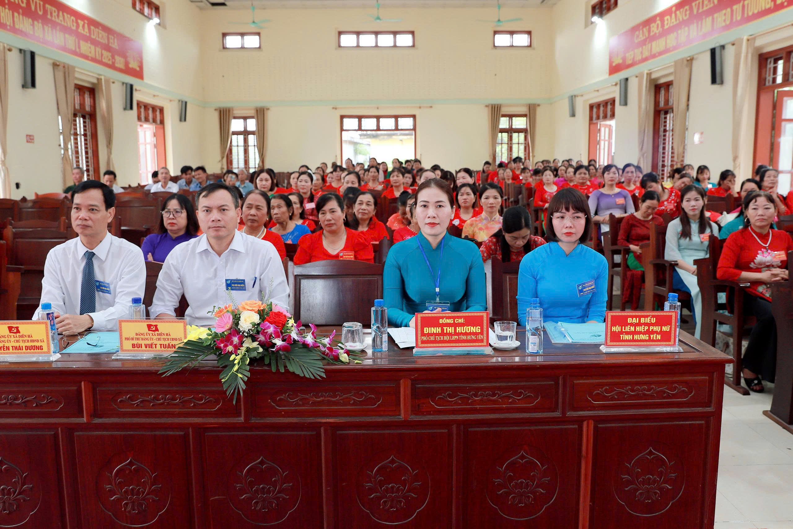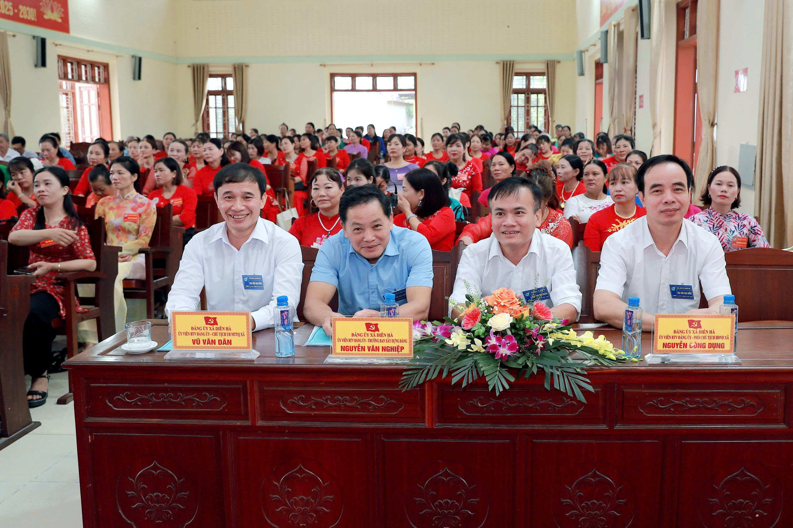 Đại hội vinh dự được đón tiếp các đồng chí lãnh đạo đến dự và chỉ đạo Đại hội: đồng chí Đinh Thị Hương- Phó Chủ tịch Hội Liên hiệp Phụ nữ tỉnh, đồng chí Nguyễn Thị Châm- Uỷ viên BCH Hội Liên hiệp Phụ nữ tỉnh, Đồng chí Nguyễn Thái Dương – Bí thư Đảng ủy, Chủ tịch HĐND xã; Đồng chí Bùi Viết Tuấn – Phó Bí thư, Chủ tịch UBND xã Cùng các đồng chí trong Ban Chấp hành Đảng Bộ và 155 đại biểu trong toàn xã.
