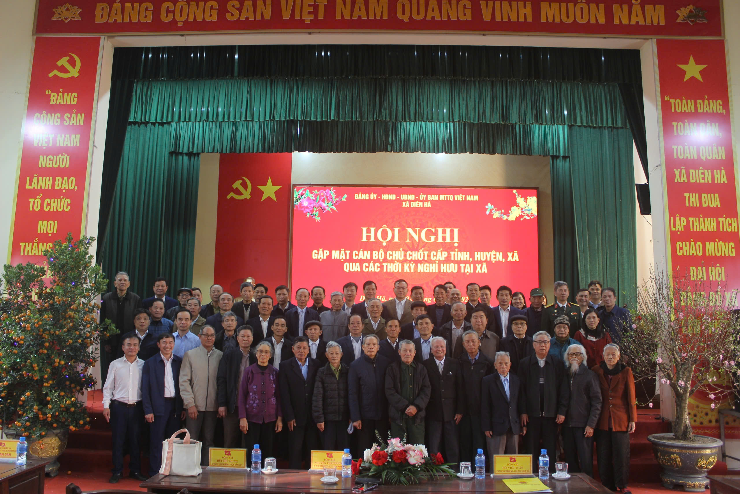 Dự Hội nghị có đồng chí Nguyễn Thái Dương – Bí thư Đảng ủy, Chủ tịch HĐND xã; đồng chí Bùi Phú Hưng – Phó Bí thư Thường trực Đảng ủy; đồng chí Bùi Viết Tuấn – Phó Bí thư Đảng ủy, Chủ tịch UBND xã; cùng các đồng chí trong Ban Thường vụ, Ban Chấp hành Đảng bộ xã; lãnh đạo HĐND, UBND, Ủy ban MTTQ Việt Nam xã; đại diện các ban, ngành, đoàn thể, cán bộ, công chức xã và các đồng chí cán bộ chủ chốt cấp tỉnh, huyện, xã qua các thời kỳ đã nghỉ hưu. Sự hiện diện đông đủ của các đại biểu đã tạo nên bầu không khí trang trọng, đầm ấm và thắm tình đồng chí.