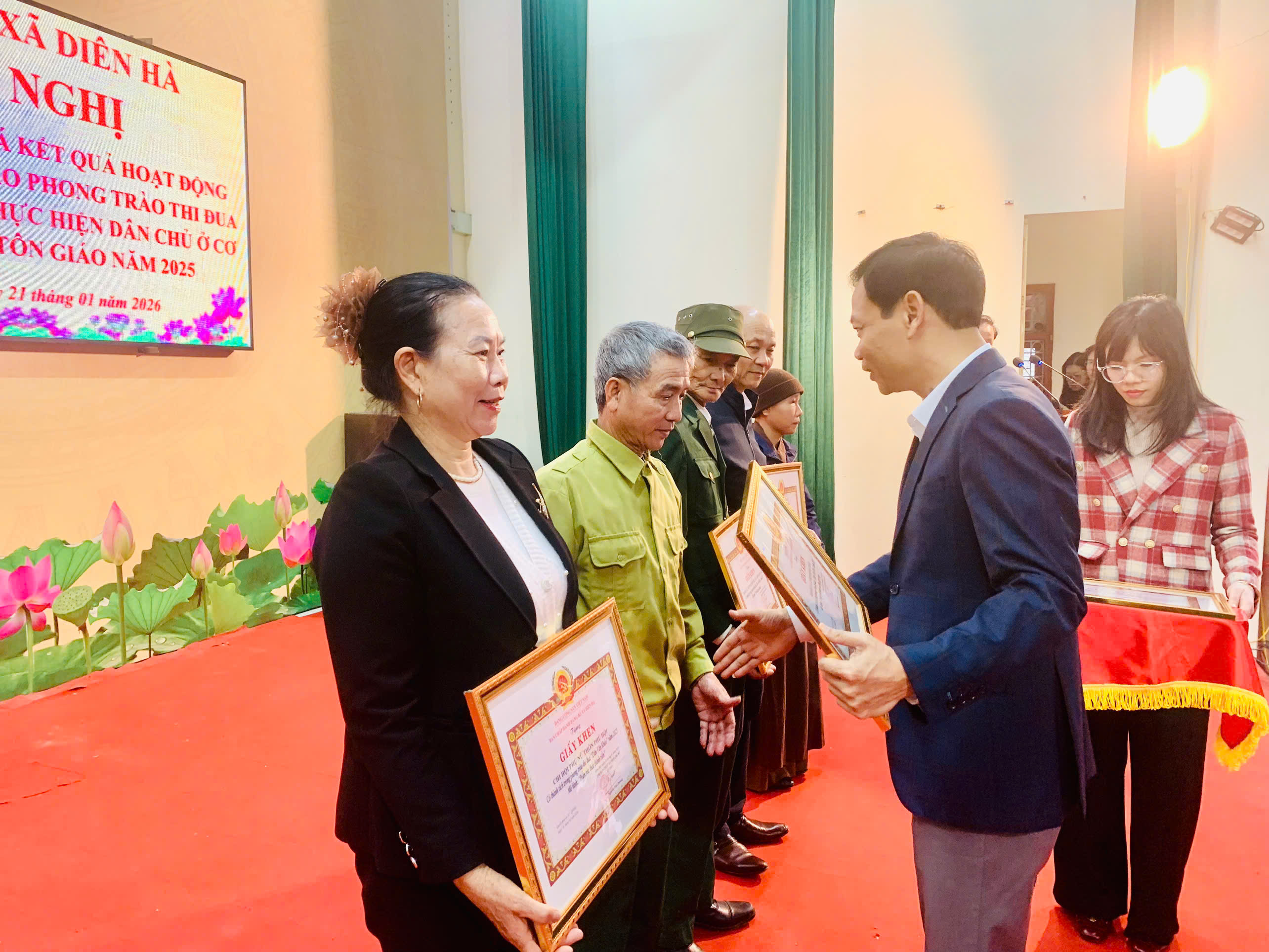 Nhân dịp này, Ban Thường vụ Đảng ủy xã Diên Hà đã trao Quyết định khen thưởng cho 05 tập thể tiêu biểu trong việc xây dựng và thực hiện phong trào thi đua “Dân vận khéo” năm 2025, qua đó kịp thời động viên, khích lệ các tập thể tiếp tục phát huy những cách làm hay, sáng tạo tại cơ sở.