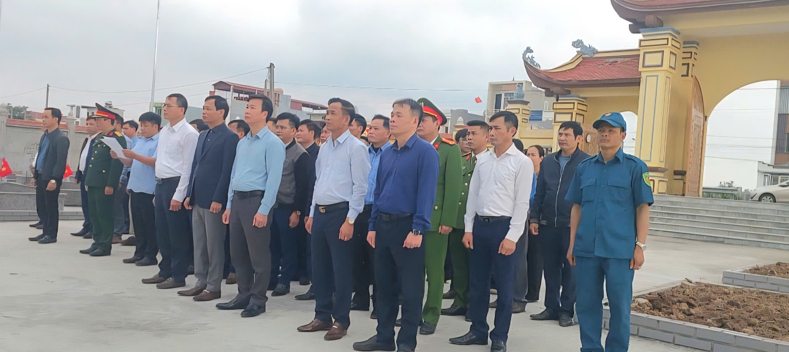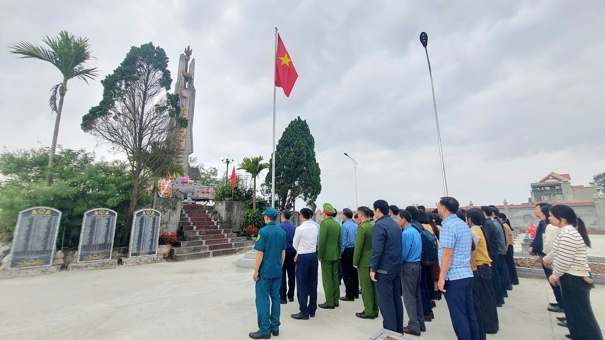Trong không khí trang nghiêm, các đại biểu đã kính cẩn đặt vòng hoa, dâng hương và dành phút mặc niệm bày tỏ lòng biết ơn sâu sắc đối với những người con ưu tú của quê hương đã anh dũng hy sinh vì sự nghiệp đấu tranh giải phóng dân tộc, bảo vệ Tổ quốc.