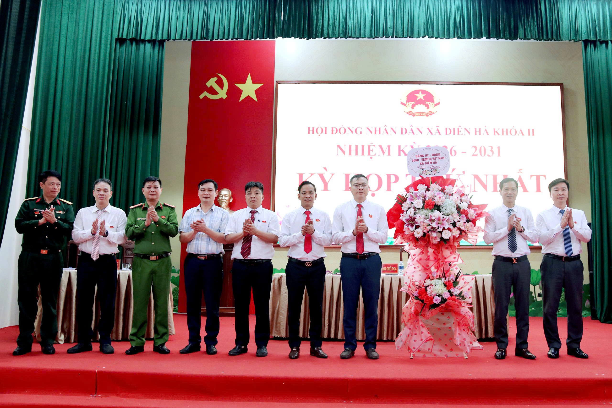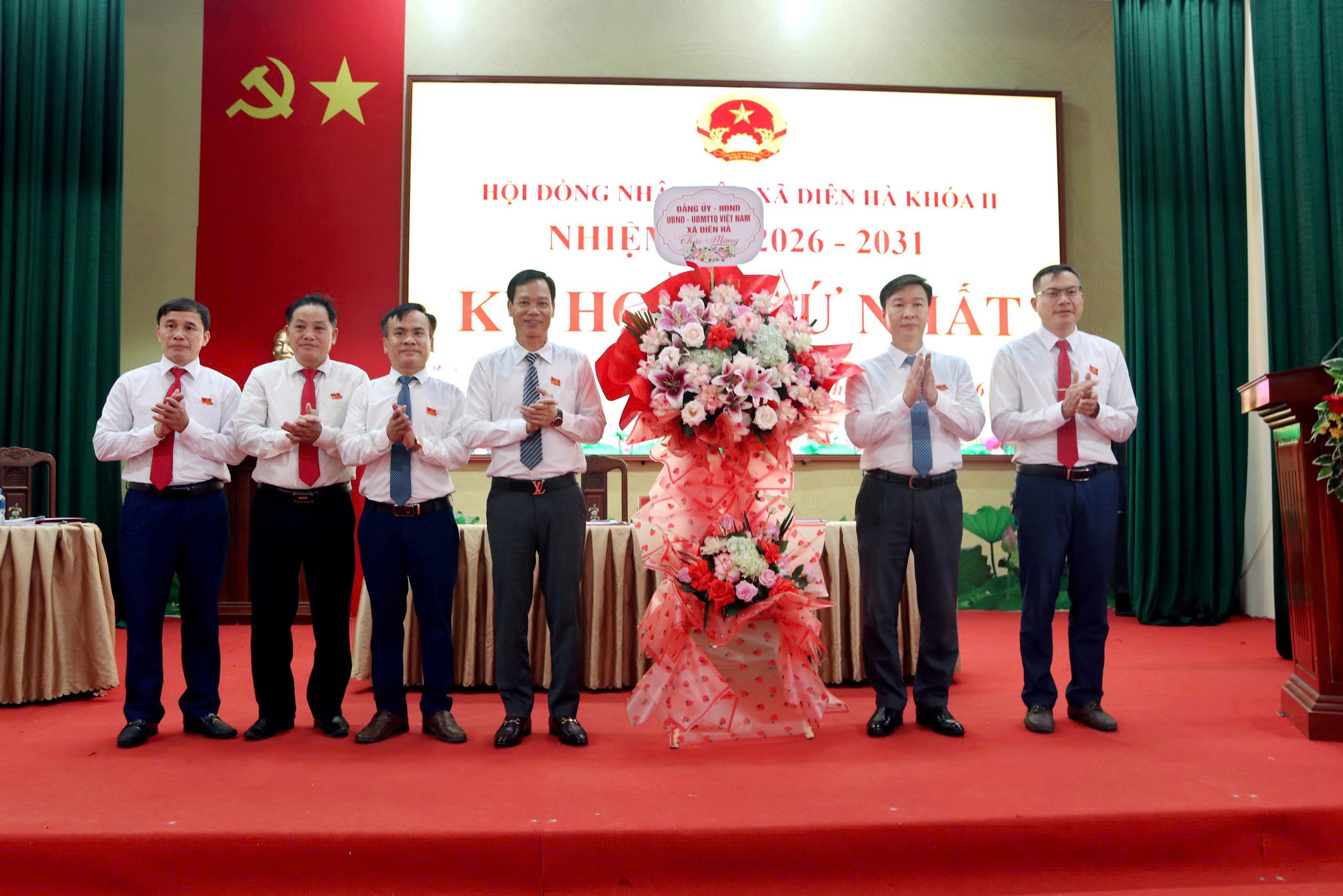 Lãnh đạo xã Diên Hà tặng hoa chúc mừng Kỳ họp thứ nhất HĐND xã khóa II, nhiệm kỳ 2026–2031.