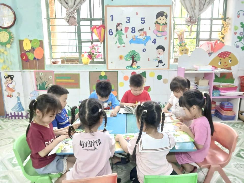 Hoạt động tìm hiểu sách của các bé trường MN Điệp Nông
