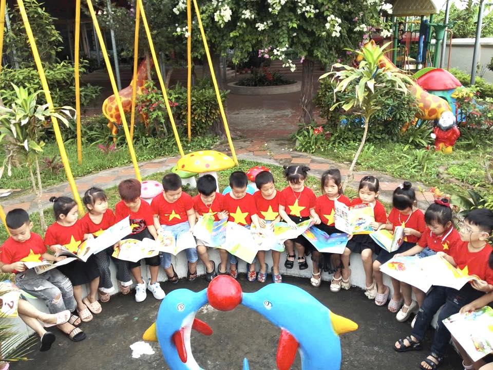 Hoạt động khám phá sách cùng bé của các bé trường MN Kỳ Đồng