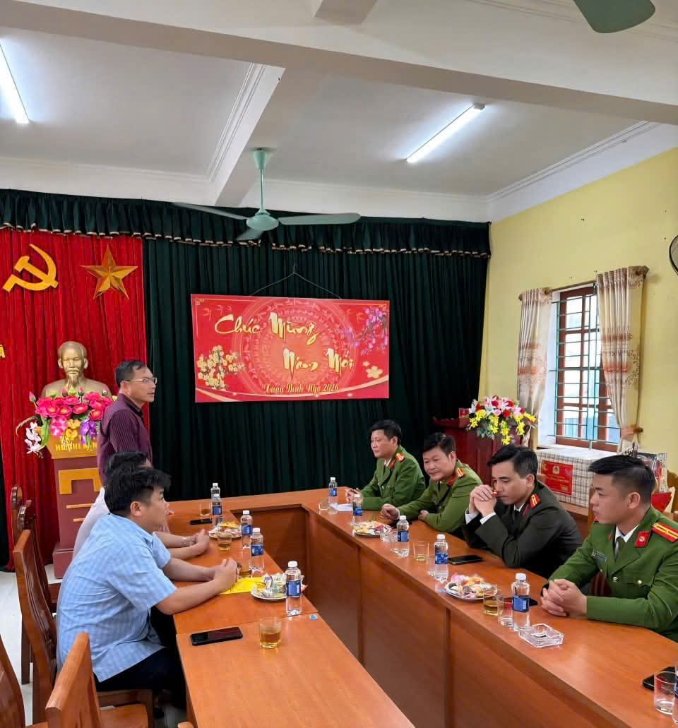 Các đồng chí Lãnh đạo UBND xã thăm, chúc tết lực lượng Công an xã