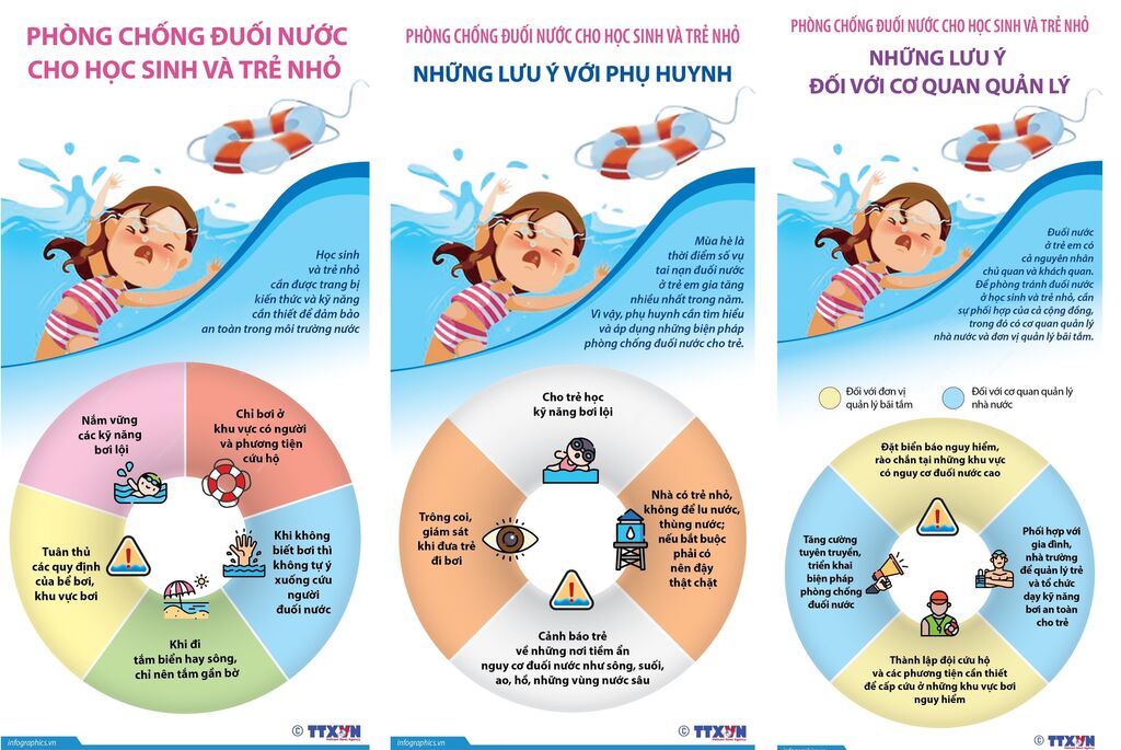 - Trang bị kiến thức, kỹ năng an toàn dưới nước; khuyến khích trẻ em tham gia học bơi, học kỹ năng phòng, chống đuối nước và sơ cứu ban đầu.