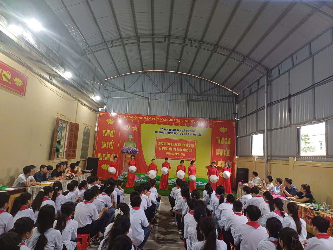 Sáng ngày 11/10/2025, Trường THCS Duyên Hải, xã Diên Hà tổ chức thành công Cuộc thi Sáng tạo Khoa học Kỹ thuật và trưng bày sản phẩm STEM năm học 2025-2026. Đây là hoạt động thường niên có ý nghĩa thiết thực, nhằm khuyến khích tinh thần nghiên cứu khoa học, phát huy khả năng sáng tạo, tư duy kỹ thuật và kỹ năng thực hành của học sinh. Đến dự Cuộc thi có đồng chí Hoàng Hải Anh – chuyên viên phụ trách giáo dục UBND xã Diên Hà; cùng toàn thể cán bộ, giáo viên và các em học sinh tham gia Cuộc thi đến từ 12 lớp.
