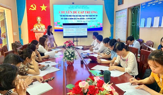 Trường Tiểu học Duyên Hải, xã Diên Hà tổ chức chuyên đề “Khắc phục tình trạng phát âm viết chính tả nhầm lẫn 2 phụ âm đầu L và N cho học sinh”