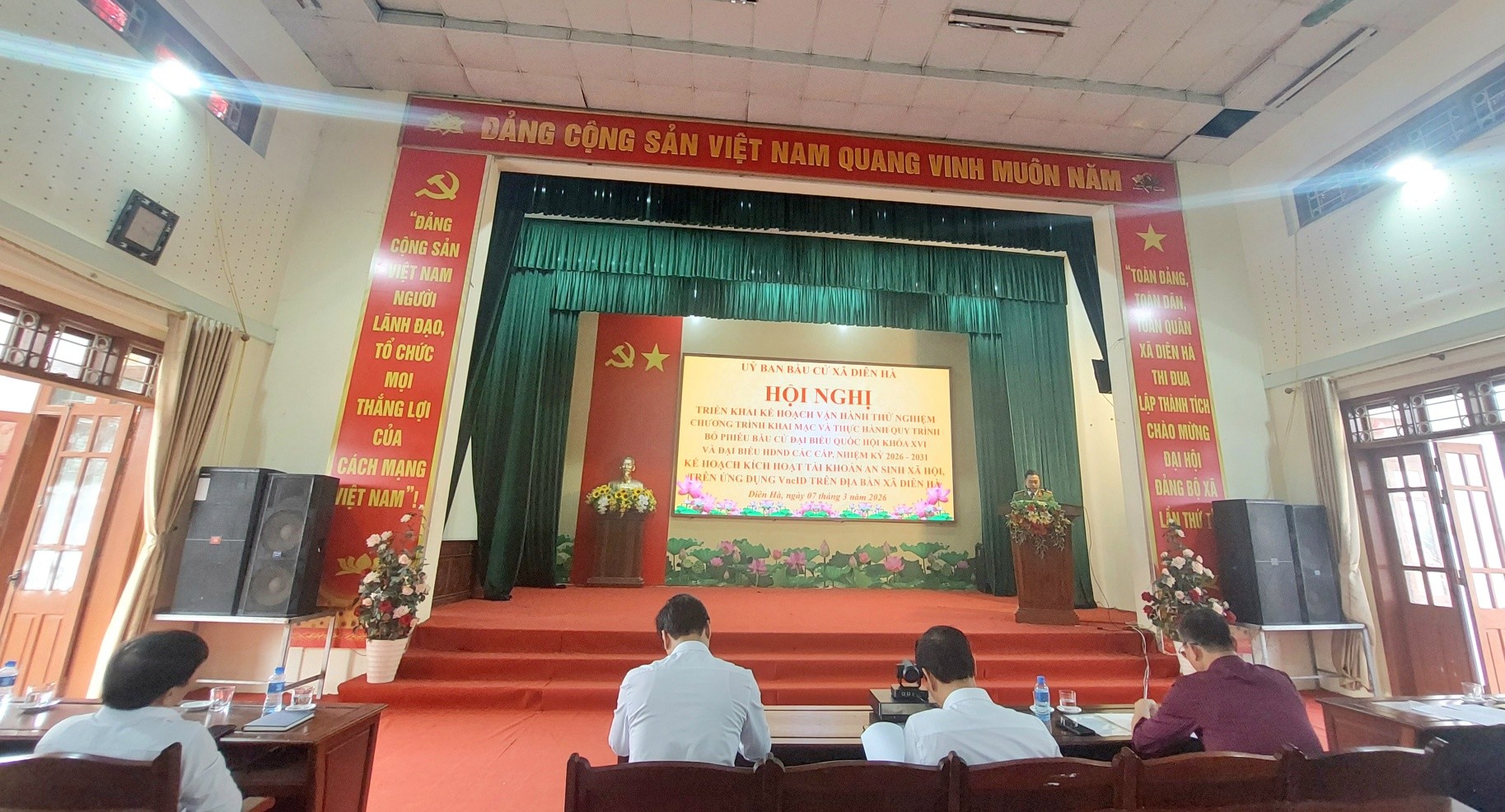 Chiều ngày 07/3/2026, tại Hội trường Đảng ủy xã Diên Hà, Ủy ban Bầu cử xã Diên Hà tổ chức Hội nghị triển khai Kế hoạch vận hành thử nghiệm chương trình khai mạc và thực hành quy trình bỏ phiếu bầu cử đại biểu Quốc hội khóa XVI và đại biểu Hội đồng nhân dân các cấp nhiệm kỳ 2026 – 2031, đồng thời triển khai kế hoạch kích hoạt tài khoản an sinh xã hội trên ứng dụng VNeID trên địa bàn xã.