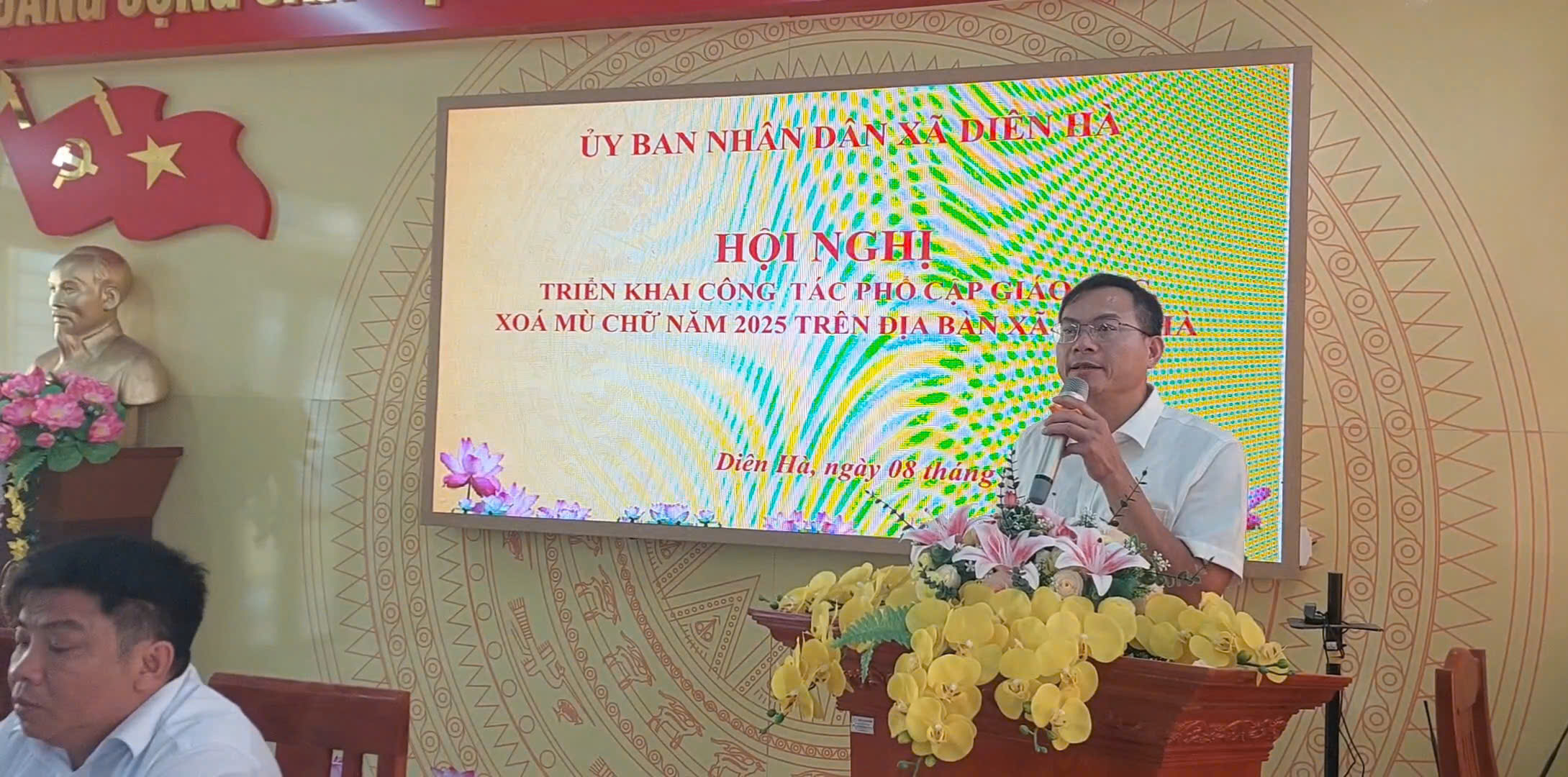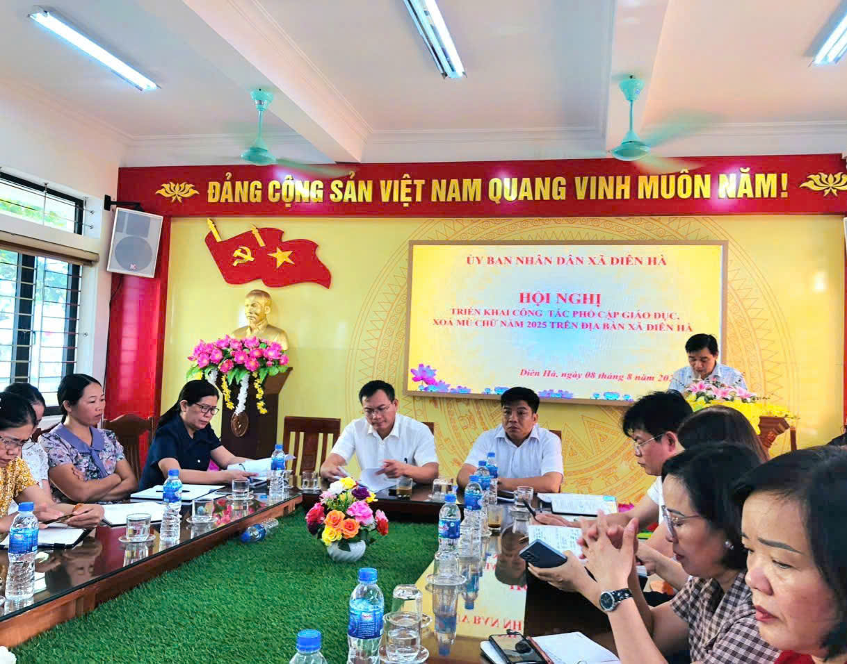 Xác định vai trò, tầm quan trọng, ý nghĩa của công tác phổ cập giáo dục, xóa mù chữ gắn với mục tiêu phát kinh tế – xã hội của địa phương, đồng chí Chủ tịch UBND xã yêu cầu các ban, ngành, đoàn thể, các cơ sở giáo dục thực hiện nghiêm túc Kế hoạch số 05/KH-UBND ngày 05/8/2025 của UBND xã Diên Hà về Kế hoạch chỉ đạo, thực hiện công tác Phổ cập giáo dục, xóa mù chữ năm 2025; nâng cao hơn nữa tinh thần trách nhiệm, khắc phục khó khăn, phân công lực lượng phù hợp để thực hiện công tác phổ cập giáo dục, xóa mù chữ bảo đảm đúng quy định và yêu cầu về thời gian.