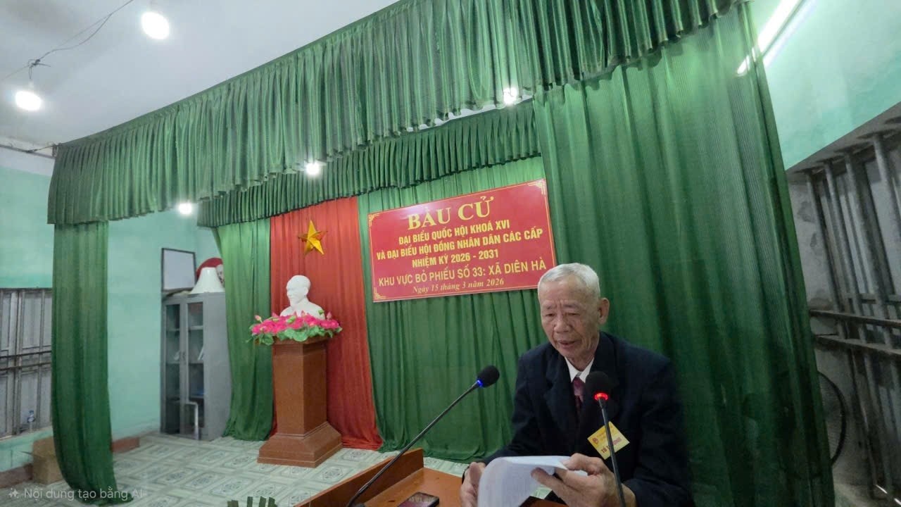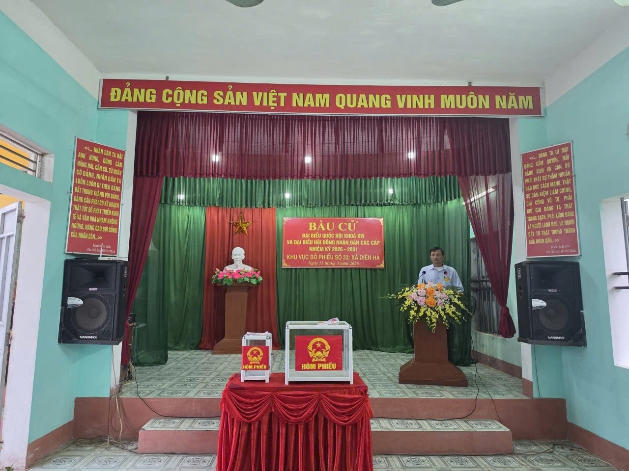 Trong không khí phấn khởi của Ngày hội toàn dân, sáng ngày 15/3/2026, từ 6 giờ 30 phút, các tổ bầu cử trên địa bàn xã Diên Hà đã đồng loạt tổ chức lễ khai mạc bầu cử đại biểu Quốc hội Việt Nam khóa XVI và đại biểu Hội đồng nhân dân các cấp nhiệm kỳ 2026–2031, bảo đảm trang nghiêm, dân chủ, đúng quy định của pháp luật và an toàn tuyệt đối.