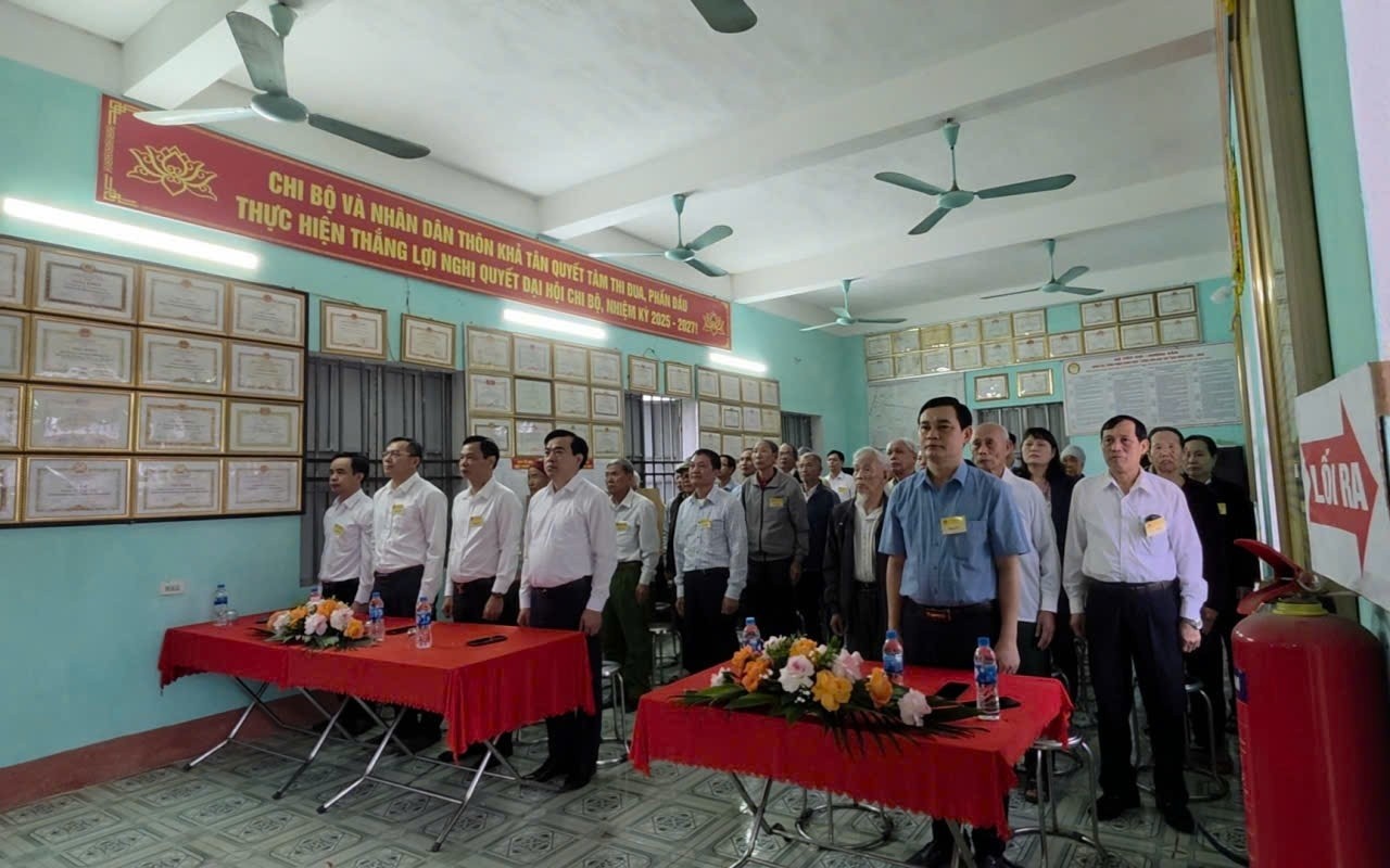 Các đồng chí lãnh đạo tỉnh và xã dự lễ khai mạc bầu cử tại khu vực bỏ phiếu số 33, Nhà văn hóa thôn Khả Tân, xã Diên Hà.