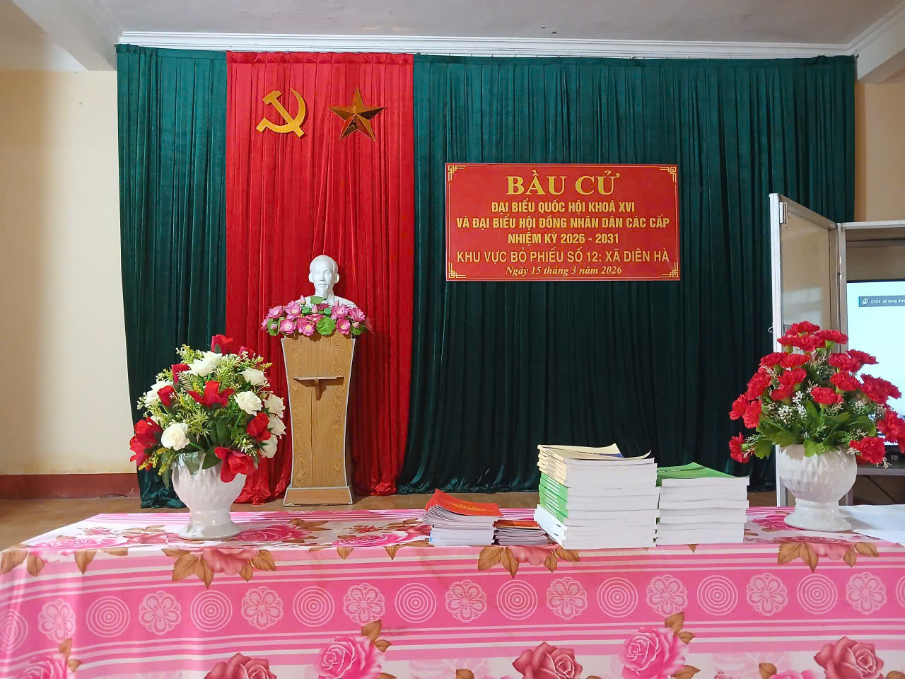 Thực hiện kế hoạch của Ủy ban bầu cử các cấp về chuẩn bị tổ chức bầu cử đại biểu Quốc hội khóa XVI và đại biểu Hội đồng nhân dân các cấp nhiệm kỳ 2026 – 2031, sáng ngày 08/3/2026, Ủy ban bầu cử xã Diên Hà đã tổ chức vận hành thử nghiệm chương trình khai mạc và thực hành quy trình bỏ phiếu bầu cử tại các khu vực bỏ phiếu trên địa bàn xã.